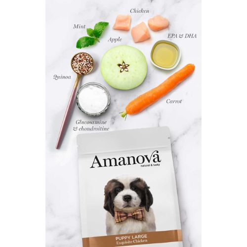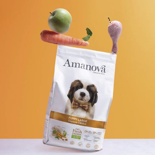 AM Puppy Large Exquisite Chicken is zorgvuldig afgestemd op de voedingsbehoeften van puppy’s van grote rassen en helpt jouw pup gezond en sterk op te groeien.