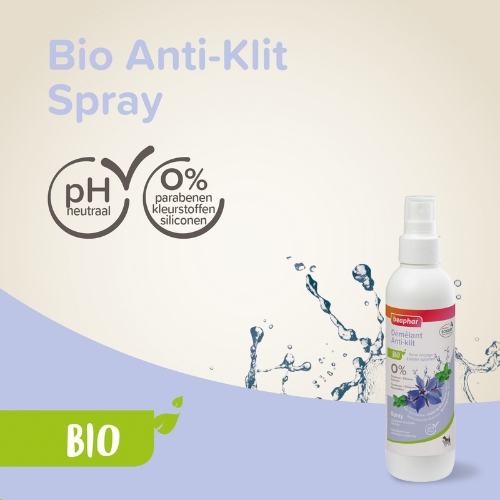 Bio Anti klit Spray is verrijkt met biologische bernagieolie en munt. Deze ingrediënten voeden, versterken en revitaliseren de vacht en geven tegelijkertijd een frisse, aangename geur. De neutrale pH waarde respecteert de natuurlijke balans van huid en vacht en maakt de spray geschikt voor dieren van alle leeftijden.