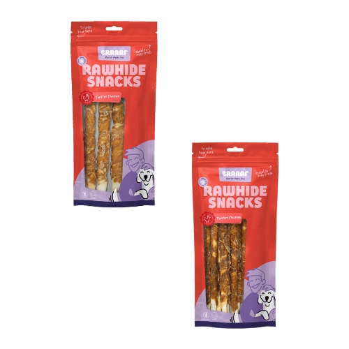 Braaaf Twister With Chicken 25cm is een stevige rawhide kauwsnack bekleed met mals kippenborstvlees. Het ondersteunt een schoon gebit, geeft mentale rust en is verkrijgbaar in twee varianten: drie stevige twisters of acht smallere twisters.