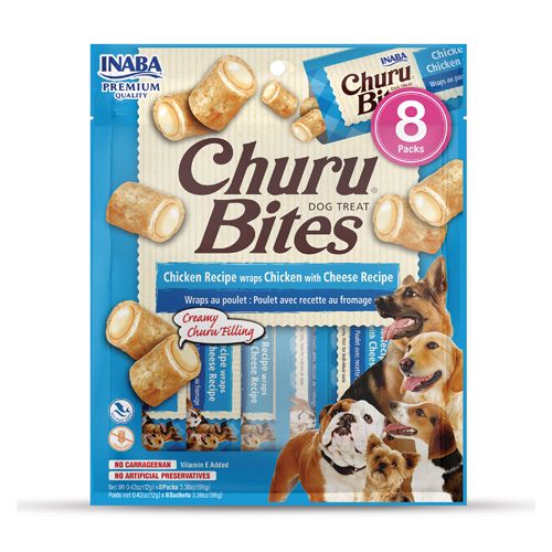 Churu Bites Chicken & Cheese Wraps zijn zachte hondensnacks met een unieke dubbele textuur. De buitenkant bestaat uit een zachte kipbasis, terwijl de kern gevuld is met een romige Churu vulling met kaas. Deze combinatie maakt de snack extra smakelijk en aantrekkelijk voor honden.