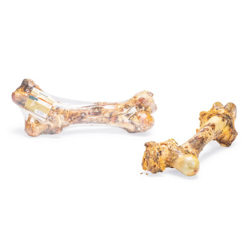 Het bot is verpakt in folie zodat het vers blijft en hygiënisch bewaard kan worden tot jouw hond ervan mag genieten.