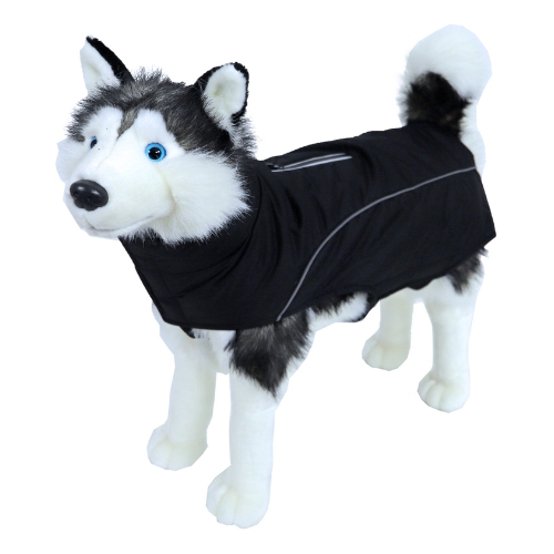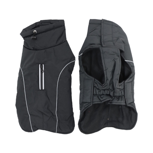 De jas sluit eenvoudig met hondvriendelijk klittenband en is voorzien van een verstelbaar trekkoord bij de hals voor een perfecte aansluiting. Op de rug zit een handige ritsopening waarmee je de lijn probleemloos aan het tuig kunt bevestigen. De reflecterende stiksels zorgen voor extra zichtbaarheid tijdens donkere wandelmomenten.