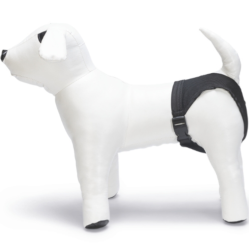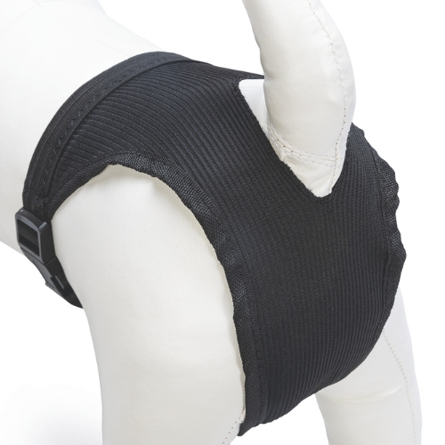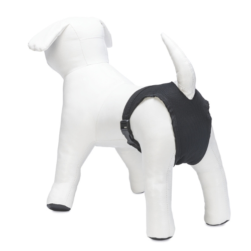 Het broekje is gemaakt van sterk nylon en heeft een fijne pasvorm die aansluit op het lichaam van je hond zonder te knellen. Dankzij het staartgat blijft het broekje goed op zijn plaats zitten en behoudt je hond volledige bewegingsvrijheid. De verstelbare elastische buikband met kliksluiting maakt het eenvoudig om het broekje aan en uit te doen, zodat je hond zo min mogelijk hinder ervaart.