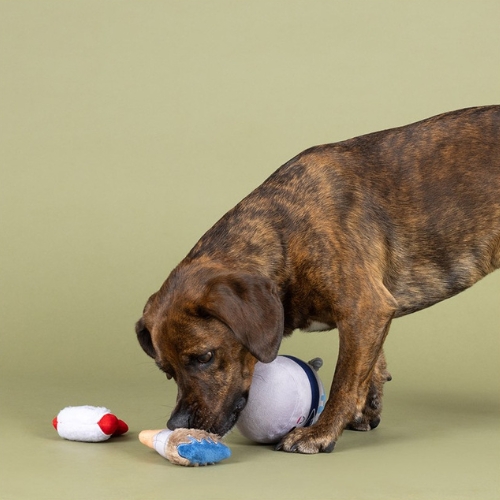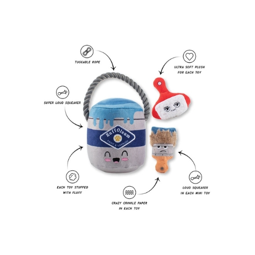 Set Fresh Coat Of Fun is een speelse hondenspeelgoedset met één groot pluche speeltje en twee kleinere speeltjes. Voorzien van luide piepers, knisperend papier en een stevig touw voor extra speelplezier.