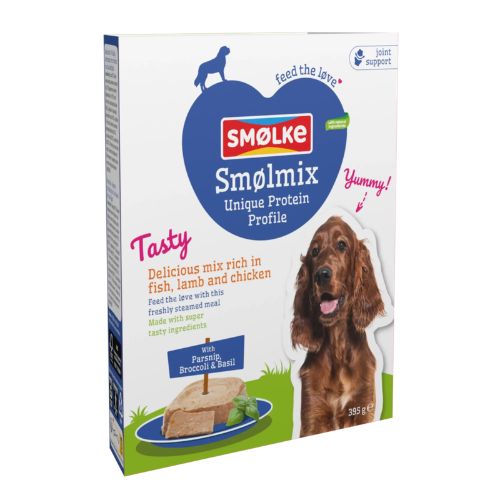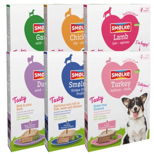 Smølke Vers Gestoomde Maaltijd is een complete maaltijd voor honden, gemaakt met veel vlees of vis en zacht gestoomd voor een heerlijke smaak en structuur. Deze maaltijd is ideaal als volledige voeding en ook perfect voor honden die graag wat afwisseling in hun voerbak krijgen.