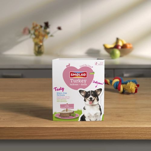 Met 70% kalkoen, aardappel, broccoli en oregano. Hypoallergeen en geschikt voor honden met gevoeligheden voor andere dierlijke eiwitten.