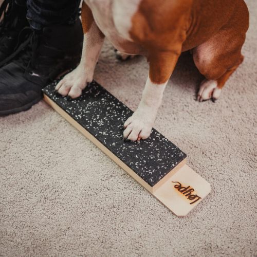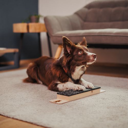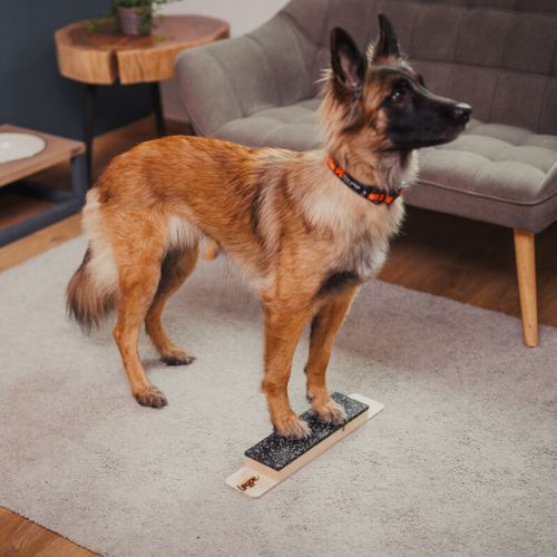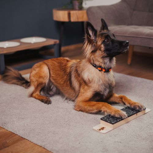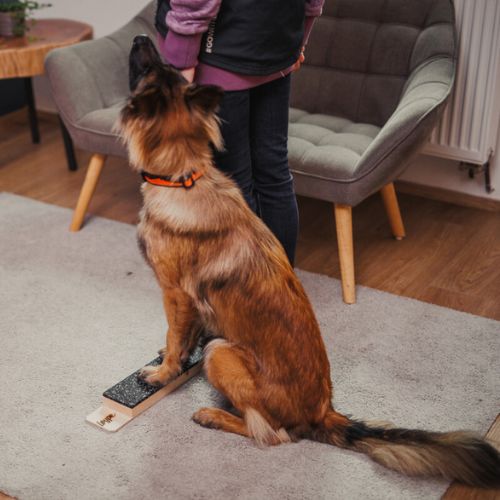 De bovenzijde is gemaakt van sterk tartanrubber dat zorgt voor maximale grip en duurzaamheid. Het oppervlak is comfortabel voor de poten, maar stevig genoeg voor intensieve training. De target blijft stabiel liggen, ook wanneer de hond enthousiast beweegt.