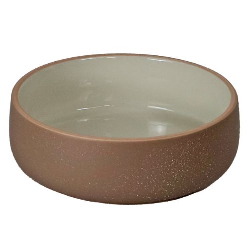 De Voerbak Keramiek Sandstone combineert een modern design met praktische eigenschappen. De ruwe structuur aan de buitenzijde en de lichte bovenrand geven deze voerbak een unieke en stijlvolle uitstraling.